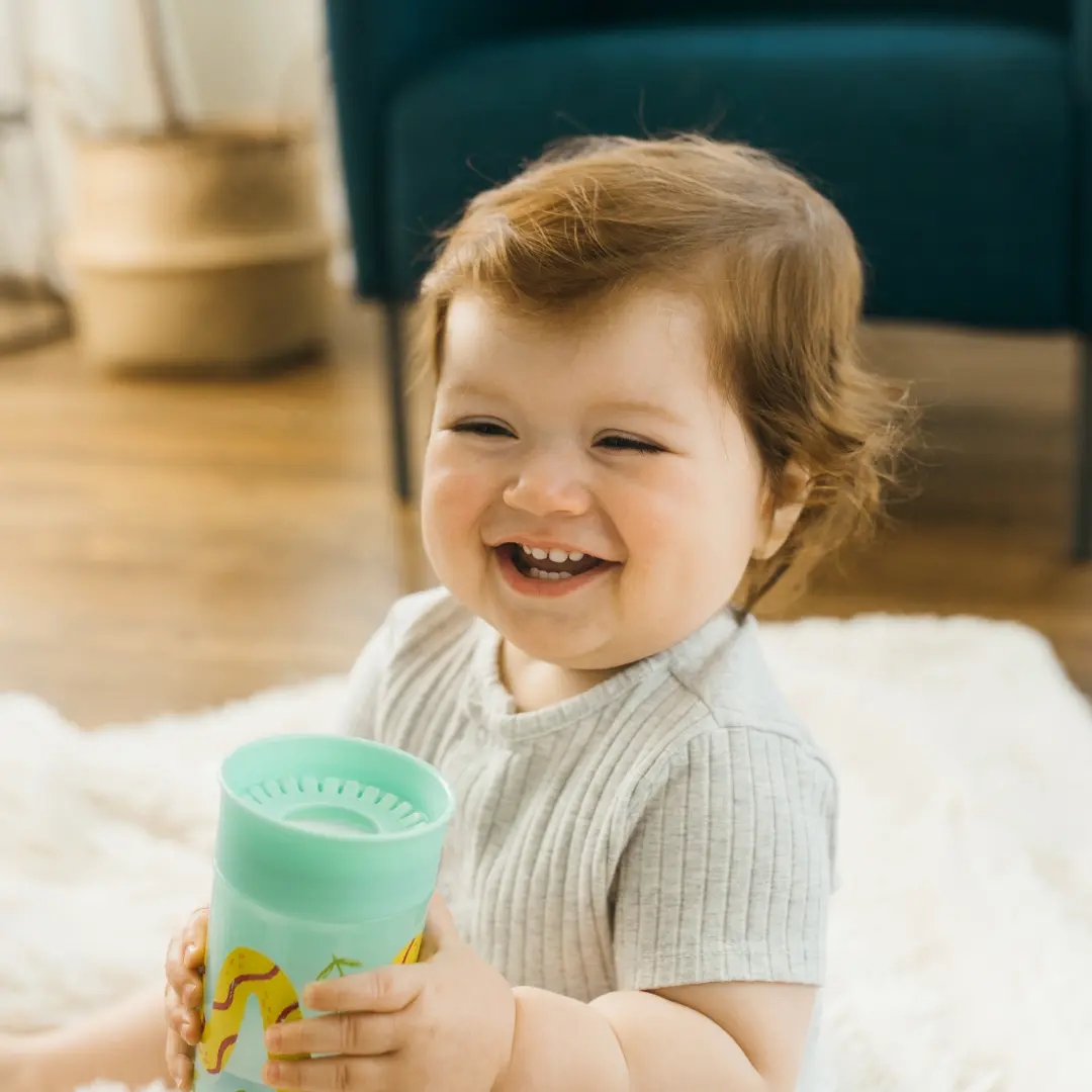• El bebé puede tomar de cualquier parte de la tapa del vaso.