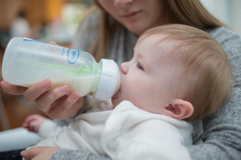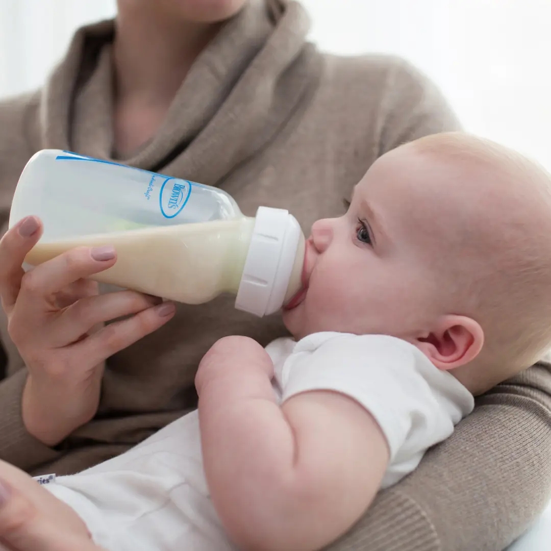 • Mezclar en un vaso la leche en polvo y el agua, revuelva hasta eliminar las burbujas y espuma, luego vacíe la fórmula en la mamadera Dr. Brown’s. No agitar la mamadera en la preparación.